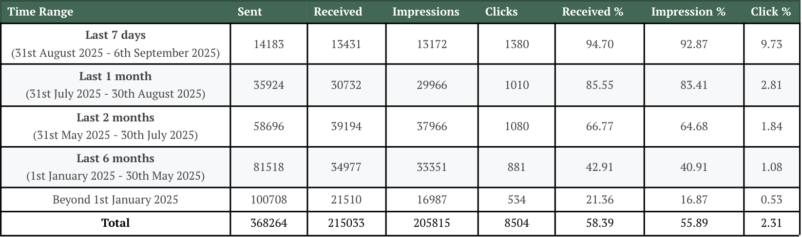 The following is an analysis of live data that highlights the influence of push delivery and impressions related to recent behaviour.