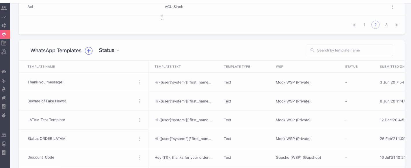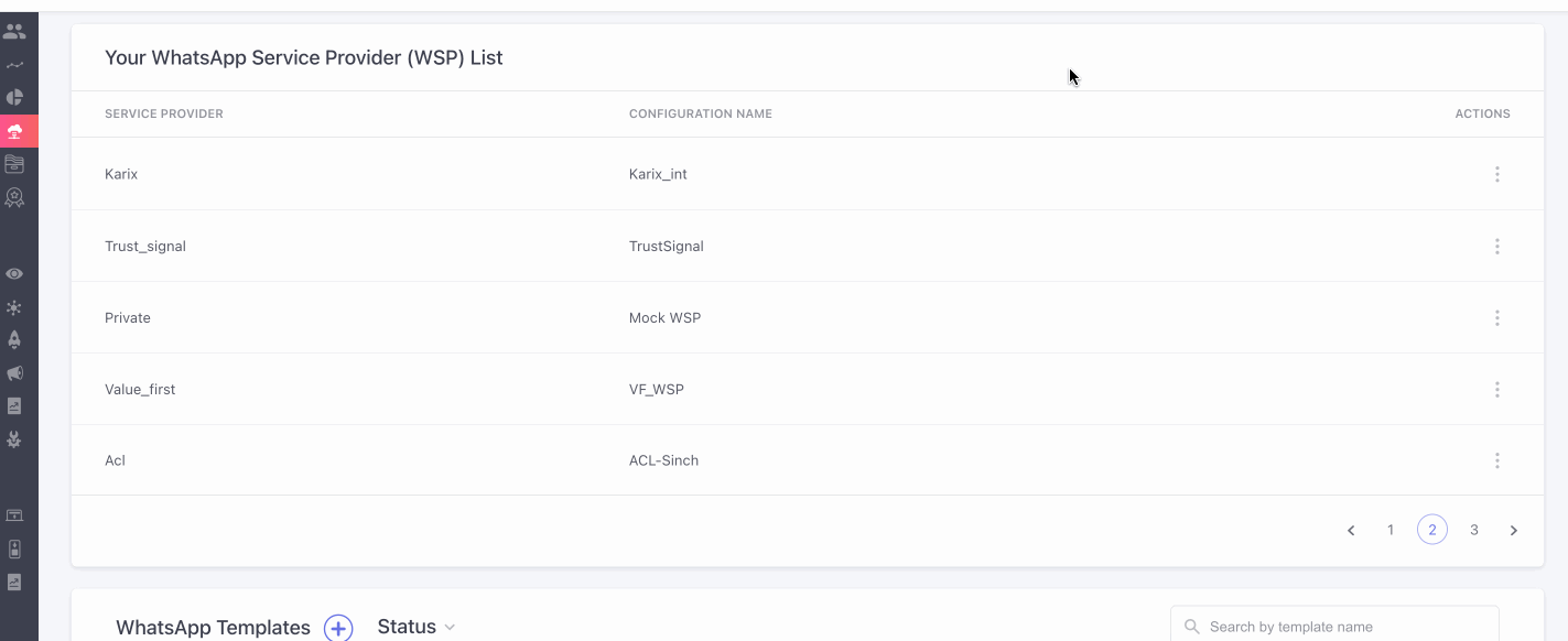 Once you've added the templates, your Data Platform> Integrations > WhatsApp section will look like as shown below. You can choose to edit/ delete a template anytime by clicking on the Actions menu.